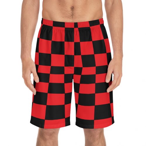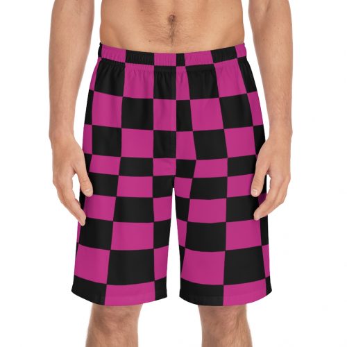 Men’s Board Shorts Bent Checks Black on Pink