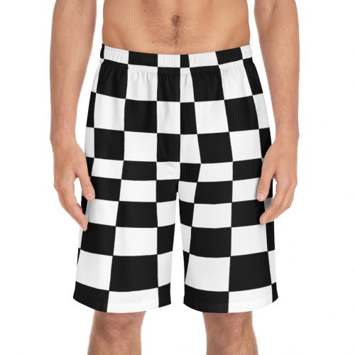 Men’s Board Shorts Bent Checks Black on White