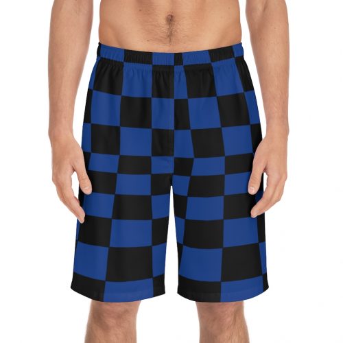 Men’s Board Shorts Bent Checks Black on Dark Blue