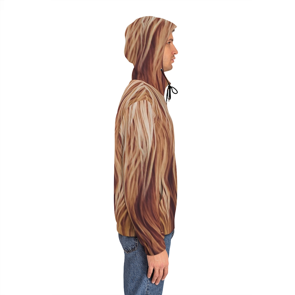 Equipped with two-side pockets for daily convenience, a hood with drawstring, and a metal zipper, this hoodie bears all the marks of a cozy daily staple.