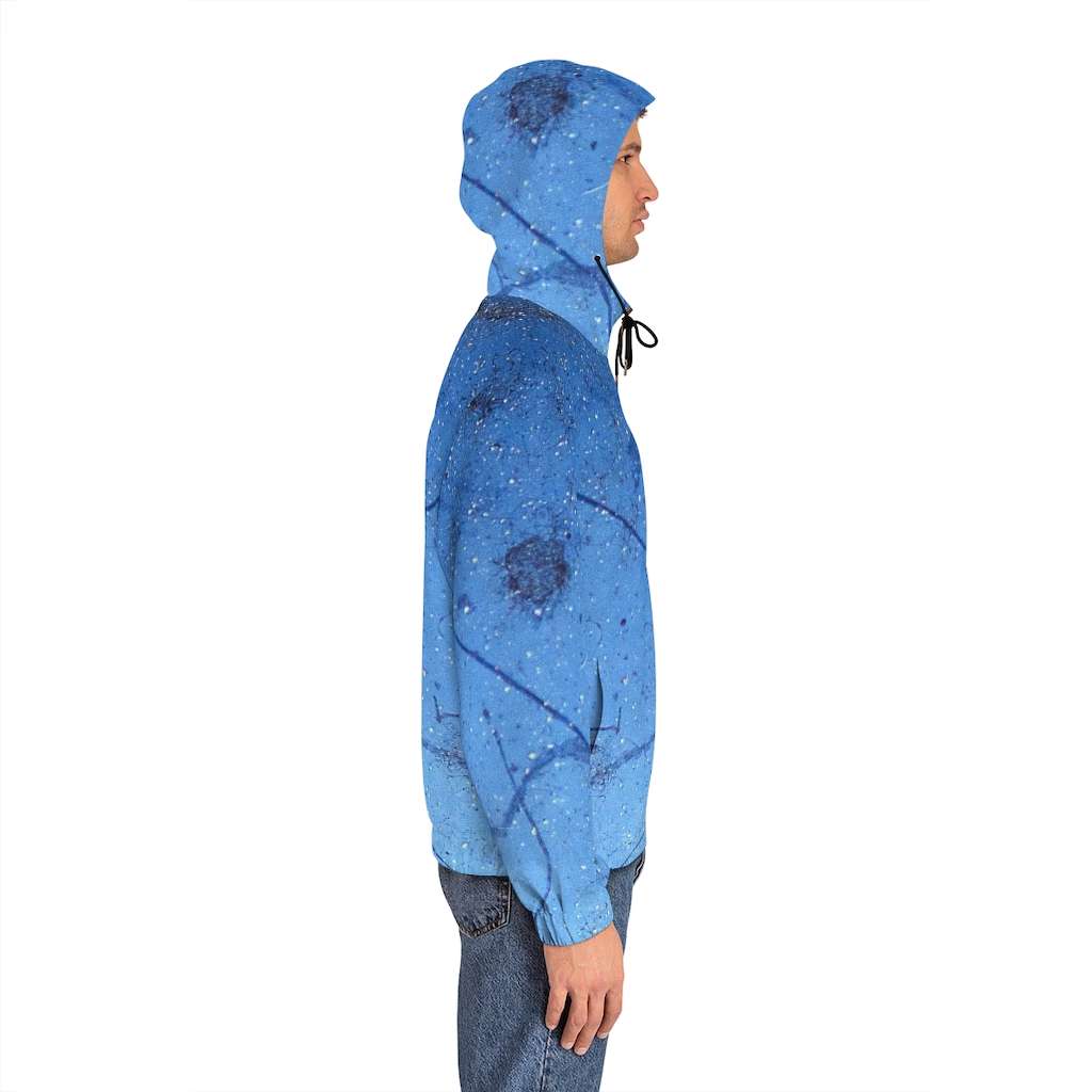 Equipped with two-side pockets for daily convenience, a hood with drawstring, and a metal zipper, this hoodie bears all the marks of a cozy daily staple.