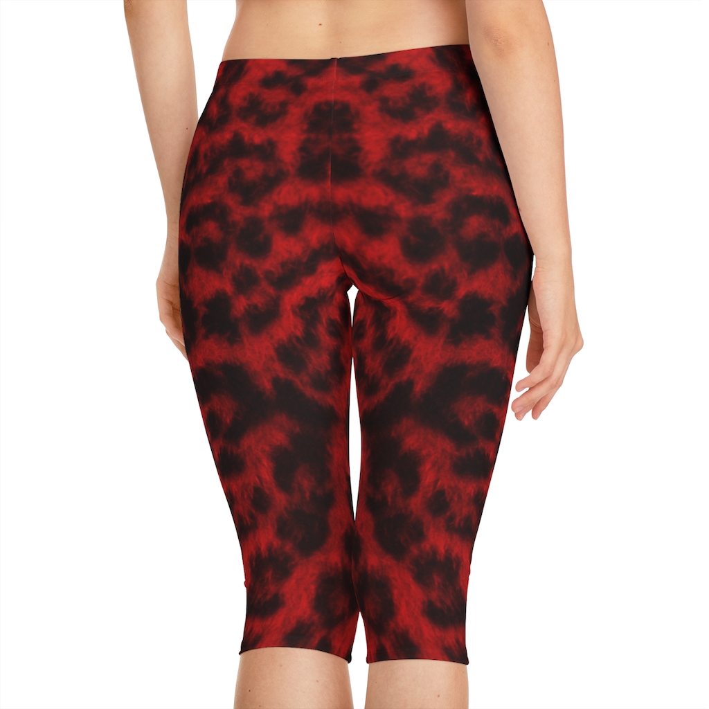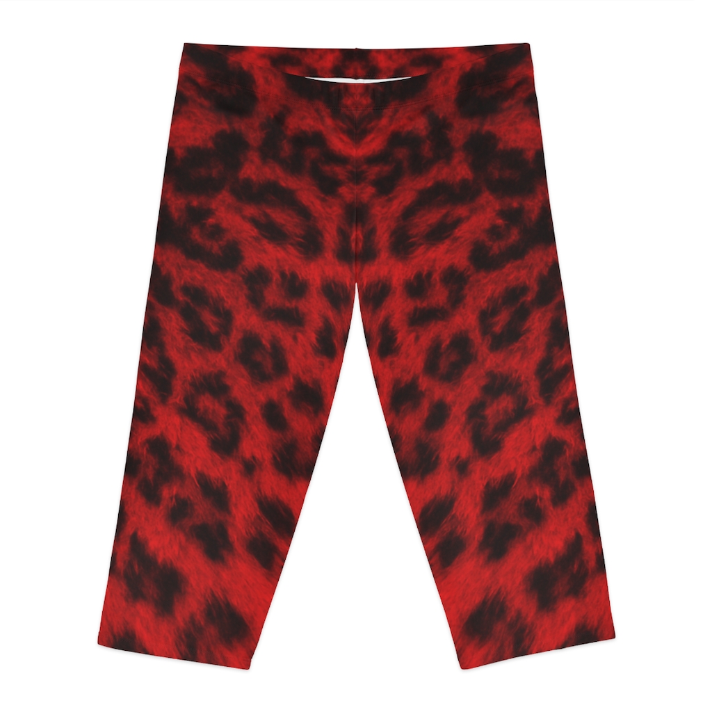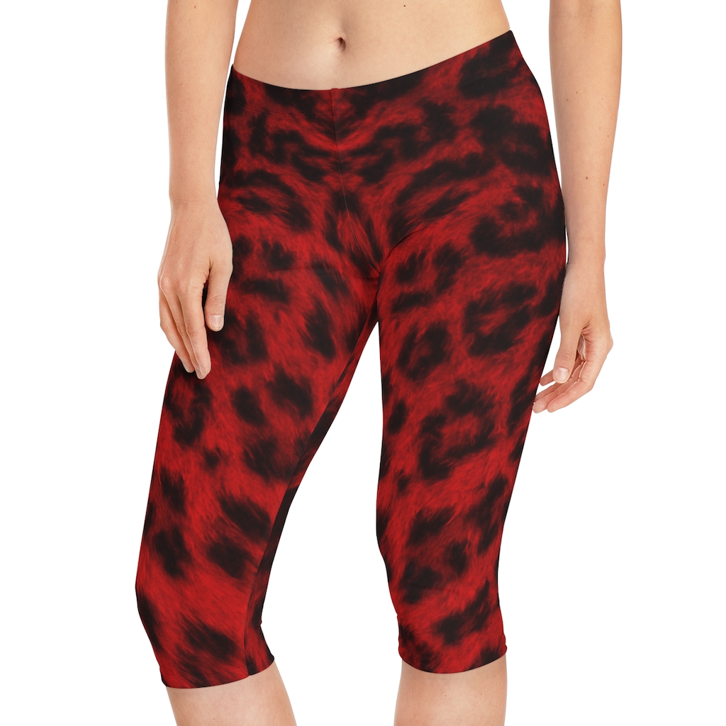 Women’s Capri Leggings Red Leopard – Large Print