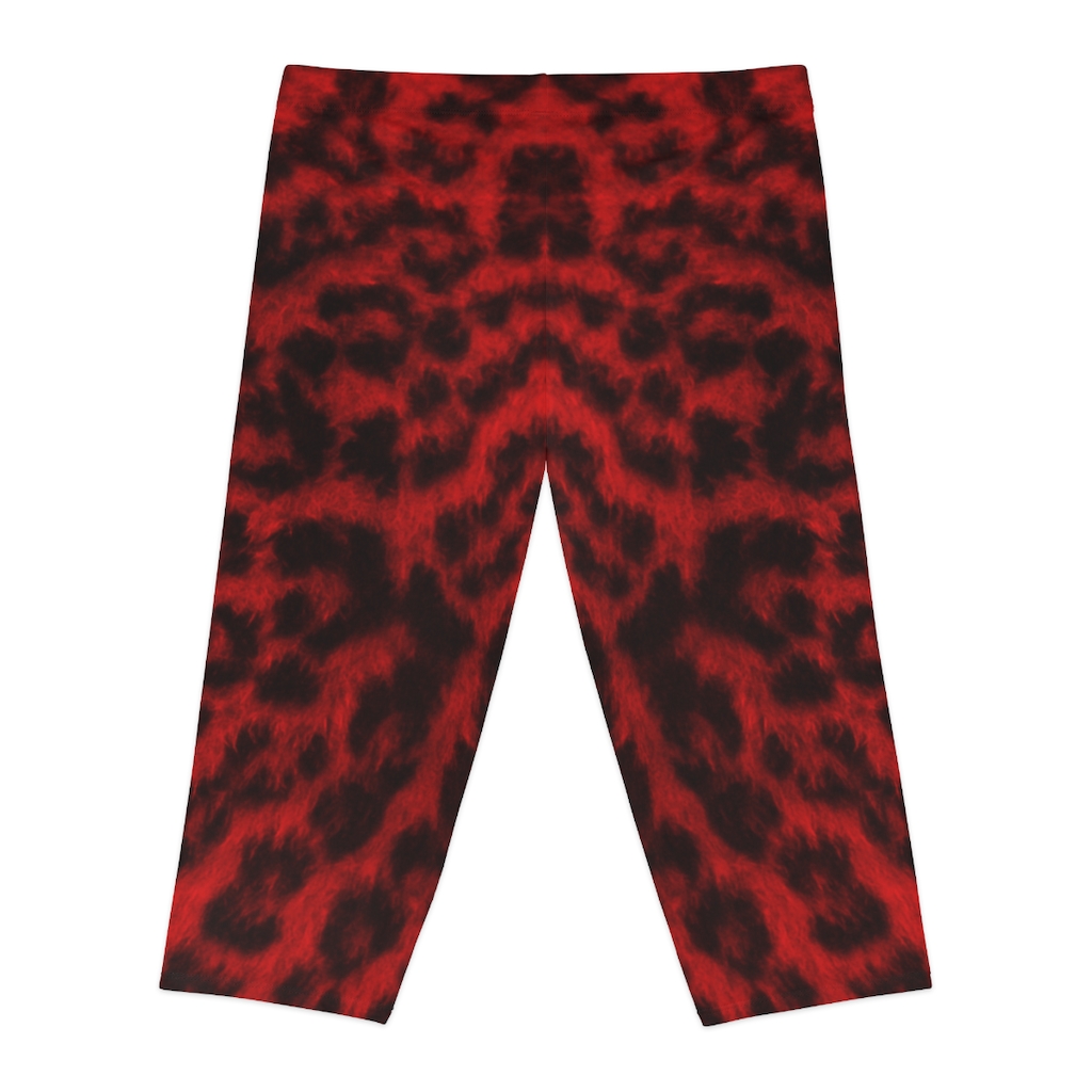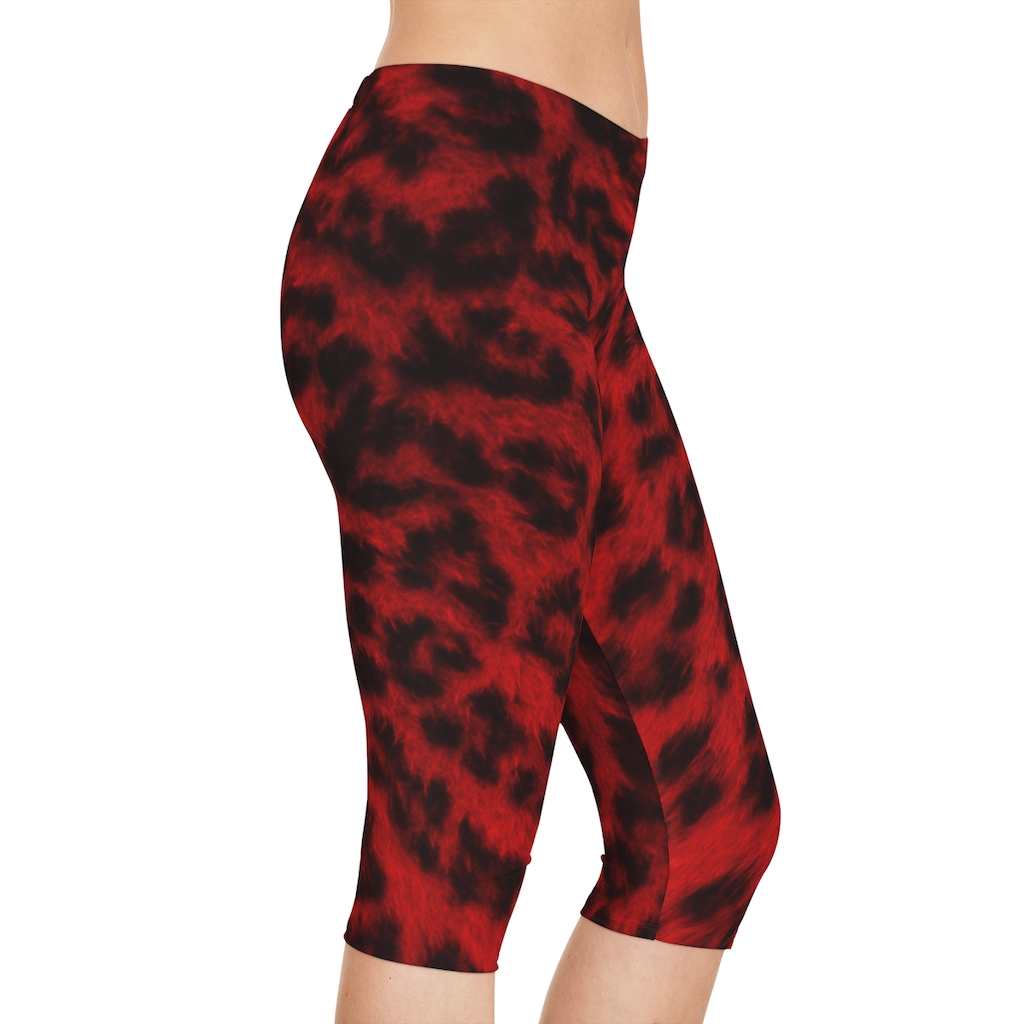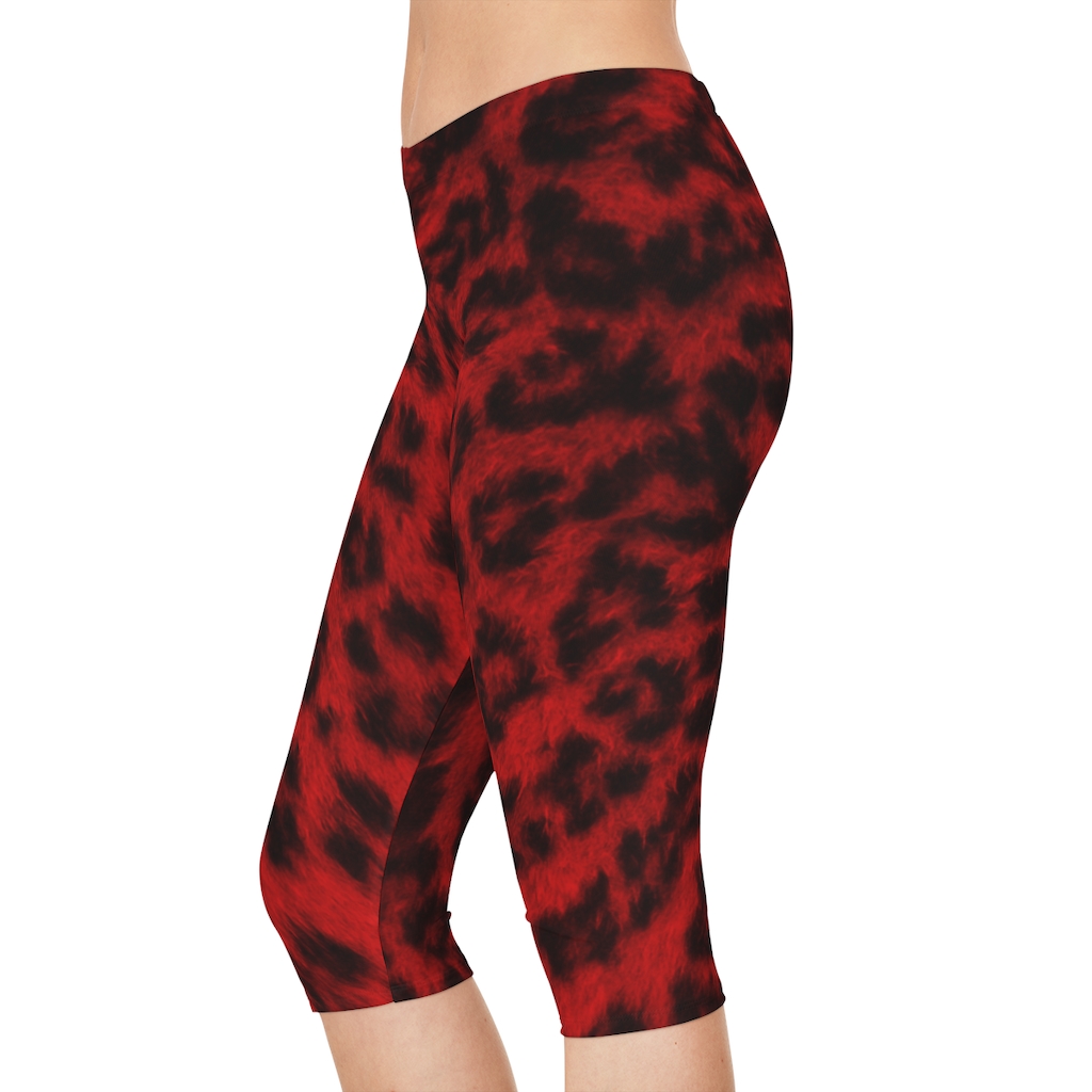 Women’s Capri Leggings Red Leopard – Large Print