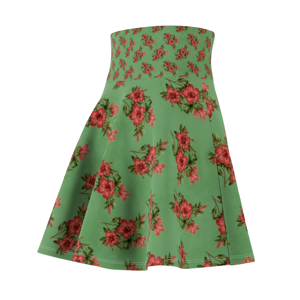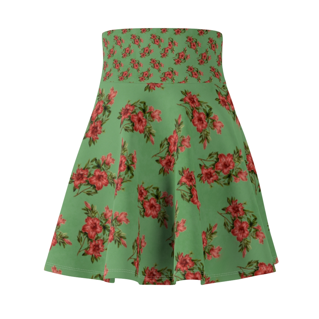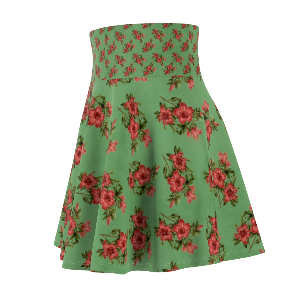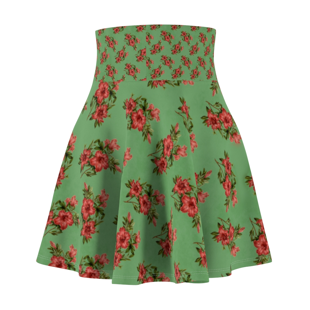 Women’s Skater Skirt – Red Flowers on Green