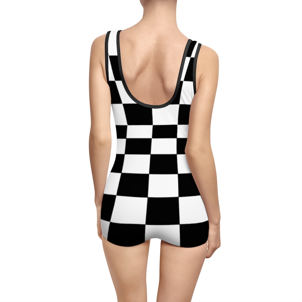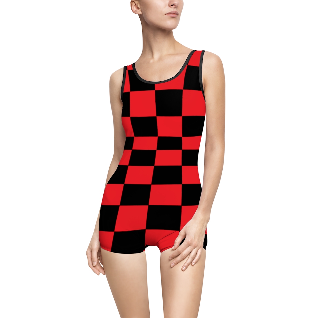 This one-piece swimsuit is designed for confident women in a vintage style. Customize it with your design to make it truly your own. Because of an advanced heat sublimation technique, it will not fade in the water or sun.