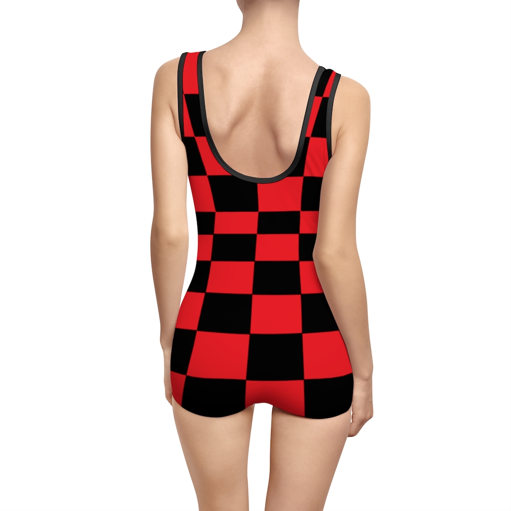 Women’s Vintage Swimsuit Warp Black on Red Checks