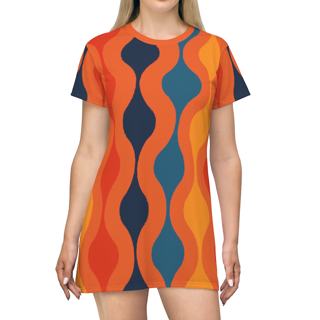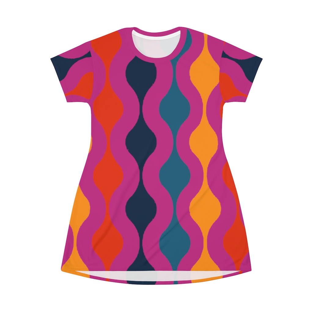 This All-Over-Print T-Shirt Dress is tagless, custom cut and sewn to match every style. The fun prints will make this t-shirt dress a great piece to sell online.