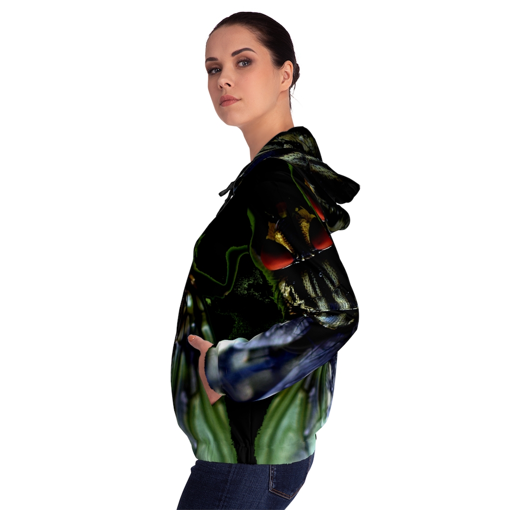 warm, stay stylish – all with this personalized women’s full zip hoodie. Equipped with two-side pockets for daily convenience, a hood with a black or white drawstring, and a metal zipper, this hoodie bears all the marks of a cozy daily staple.