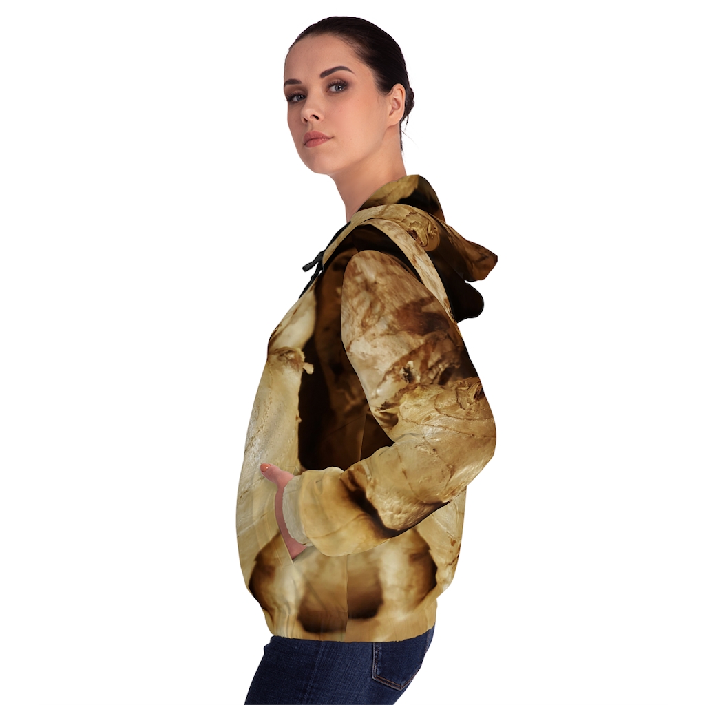 warm, stay stylish – all with this personalized women’s full zip hoodie. Equipped with two-side pockets for daily convenience, a hood with a black or white drawstring, and a metal zipper, this hoodie bears all the marks of a cozy daily staple.
