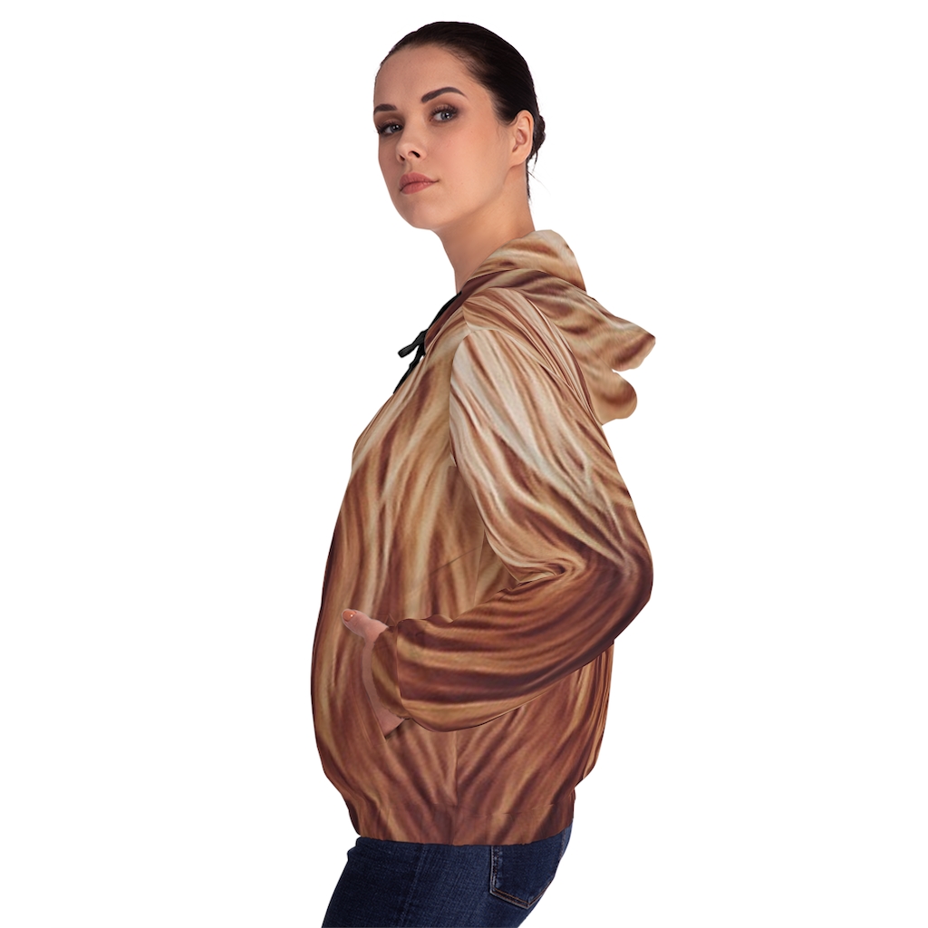 warm, stay stylish – all with this personalized women’s full zip hoodie. Equipped with two-side pockets for daily convenience, a hood with a black or white drawstring, and a metal zipper, this hoodie bears all the marks of a cozy daily staple.