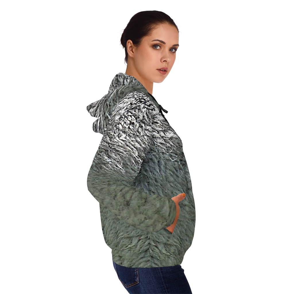warm, stay stylish – all with this personalized women’s full zip hoodie. Equipped with two-side pockets for daily convenience, a hood with a black or white drawstring, and a metal zipper, this hoodie bears all the marks of a cozy daily staple.