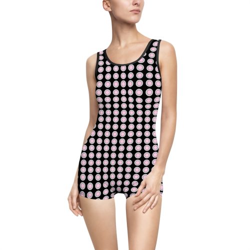 Women’s Vintage Swimsuit Warp Black on Pink Checks
