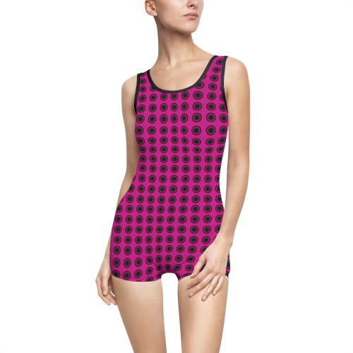Women’s Vintage Swimsuit Warp Black on Pink Checks