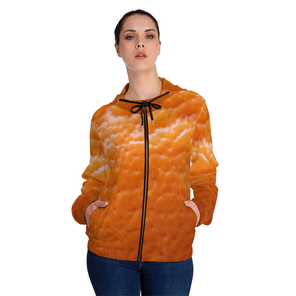 warm, stay stylish – all with this personalized women’s full zip hoodie. Equipped with two-side pockets for daily convenience, a hood with a black or white drawstring, and a metal zipper, this hoodie bears all the marks of a cozy daily staple.