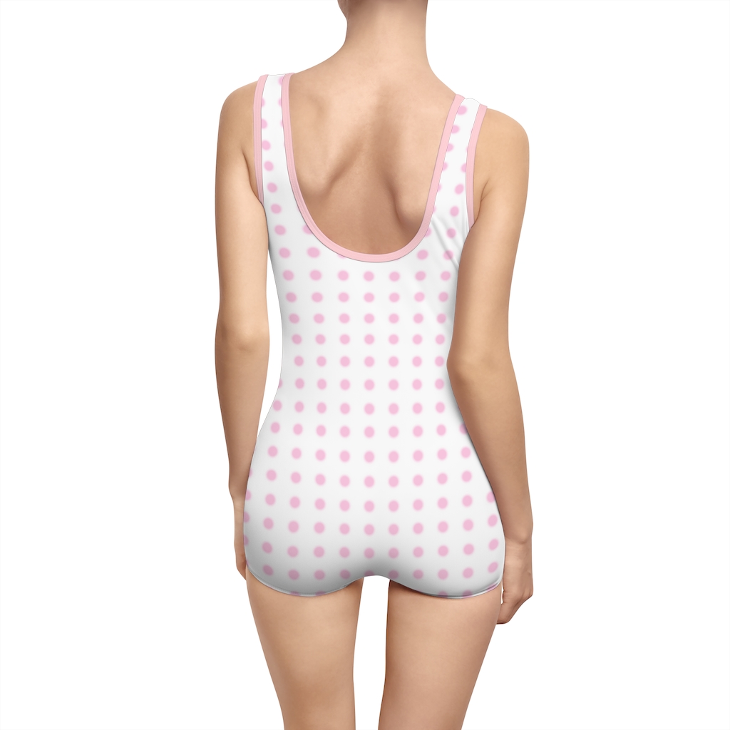 This one-piece swimsuit is designed for confident women in a vintage style. Customize it with your design to make it truly your own. Because of an advanced heat sublimation technique, it will not fade in the water or sun.