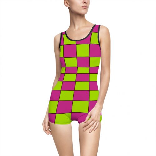 Women’s Vintage Swimsuit Warp Pink on Green Checks